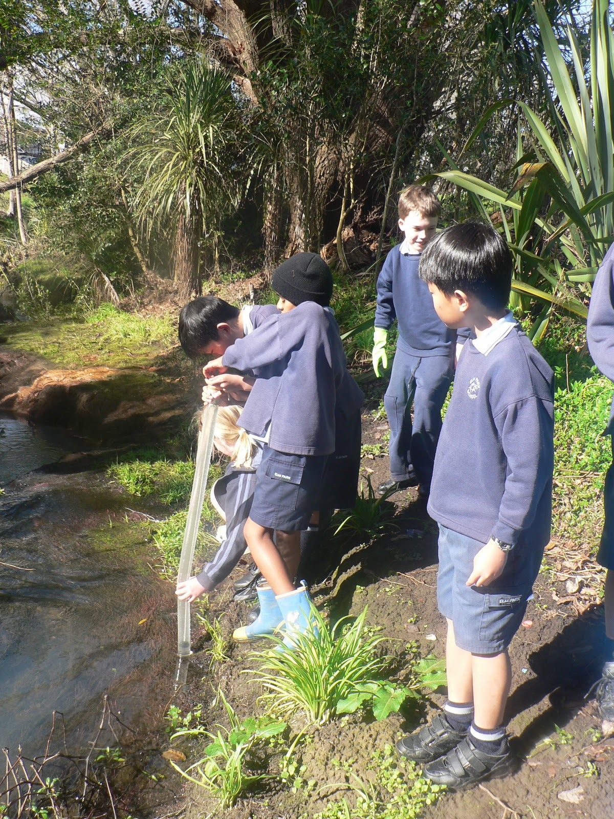 It seems that our plantings have made a difference to our stream. In the past two years our steam seemed polluted and dirty but now we have made such a difference that there is only a little pollution and we can see the bottom of the steam. However, our stream has shrunk over the years. We heard that one family used to kayak easily down the length of the stream. Another sad thing is that storm water runs into the stream. Some other disappointments are that while we were trying to save our stream others were polluting it - there was rubbish, paint cans, an old porcelain toilet and a lot of other litter everywhere. We have started on the small litter but we are going to clean it up further in Clean Up NZ Week. Something else that shocked us was that there was a tree that fell towards the stream during a storm. It could have blocked the stream. The good part is that now we have more space to plant native trees.